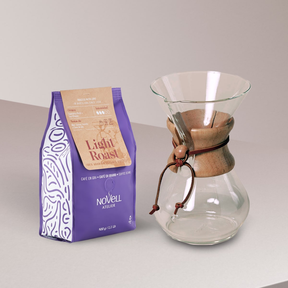 Inclou un paquet de cafè en gra Novell Atelier provinent d’Etiopía. En aquest café hi trobem notes característiques de fruites de pinyol i cítrics dolços, mandarina i te de gessamí. Amb tons de mantega fresca i tofe, i fons de coriandre. La seva acidesa brillant i cos cremós convergeixen en una tassa elegant i persistent.